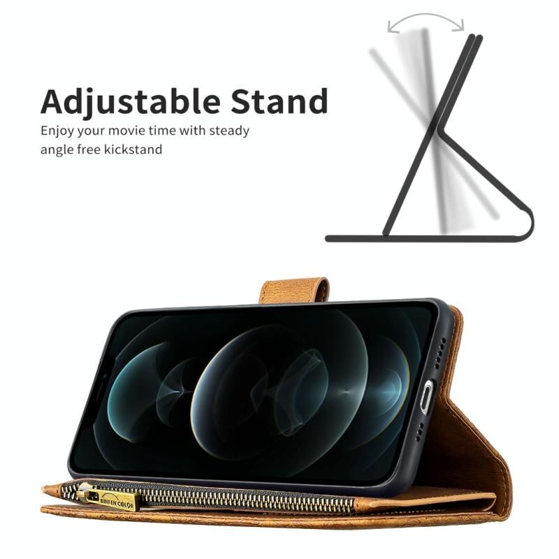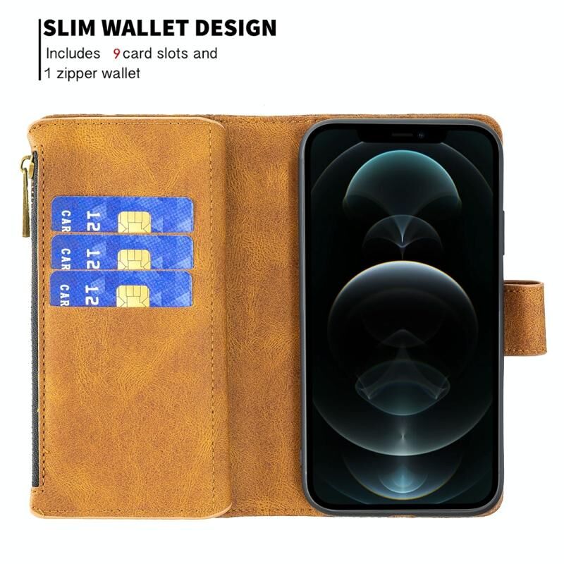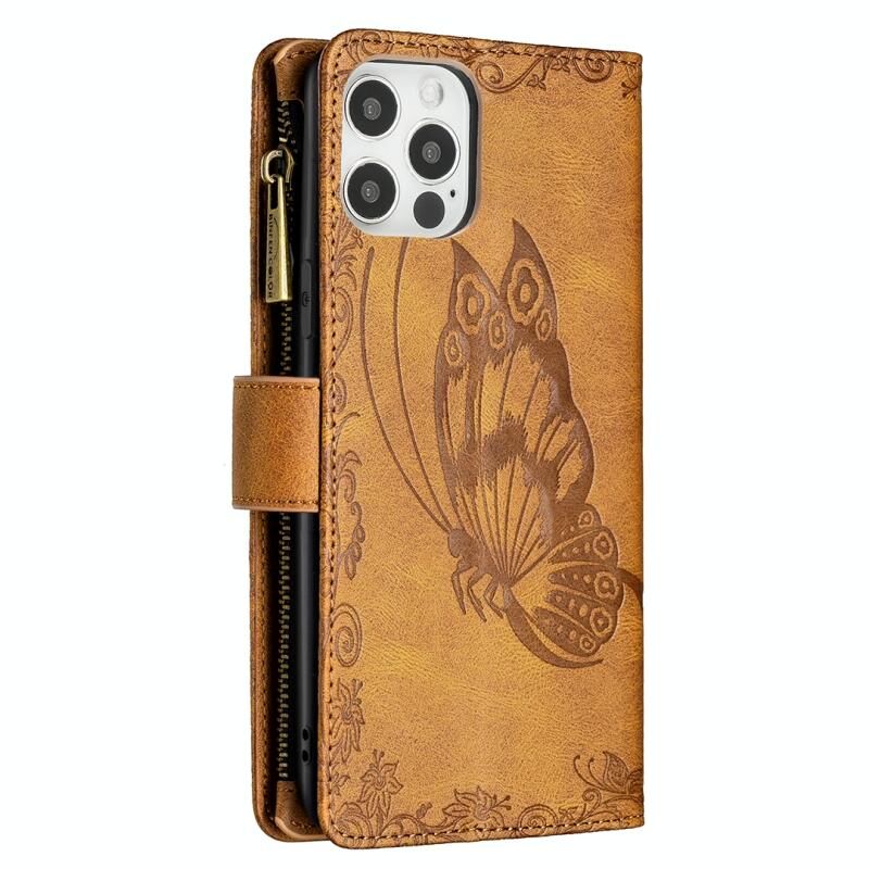 For iPhone 12 Flying Butterfly Embossing Pattern Zipper Horizontal Flip Leather Case with Holder & Card Slots & Wallet(Brown)