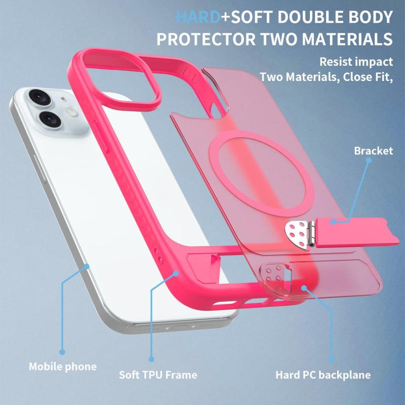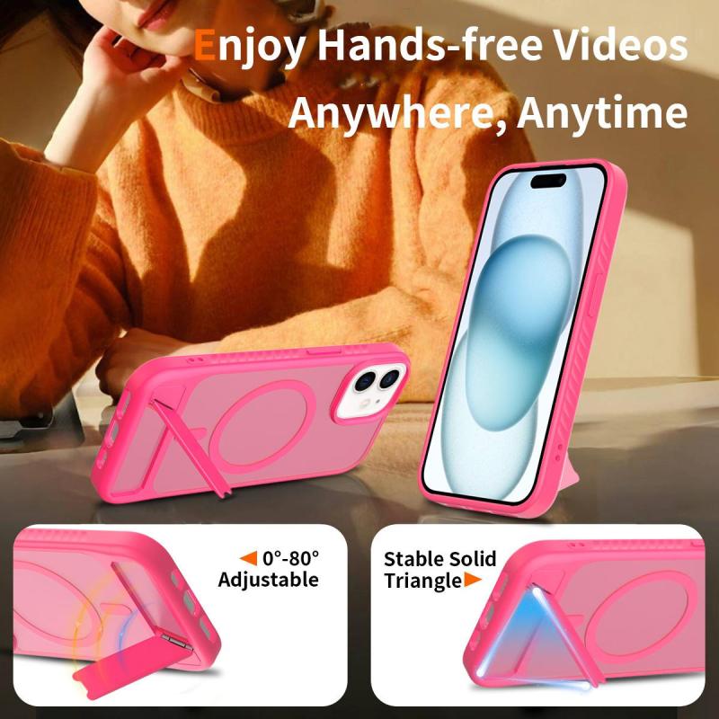 For iPhone 12 Frosted Holder PC Hybrid TPU MagSafe Phone Case(Rose Red)