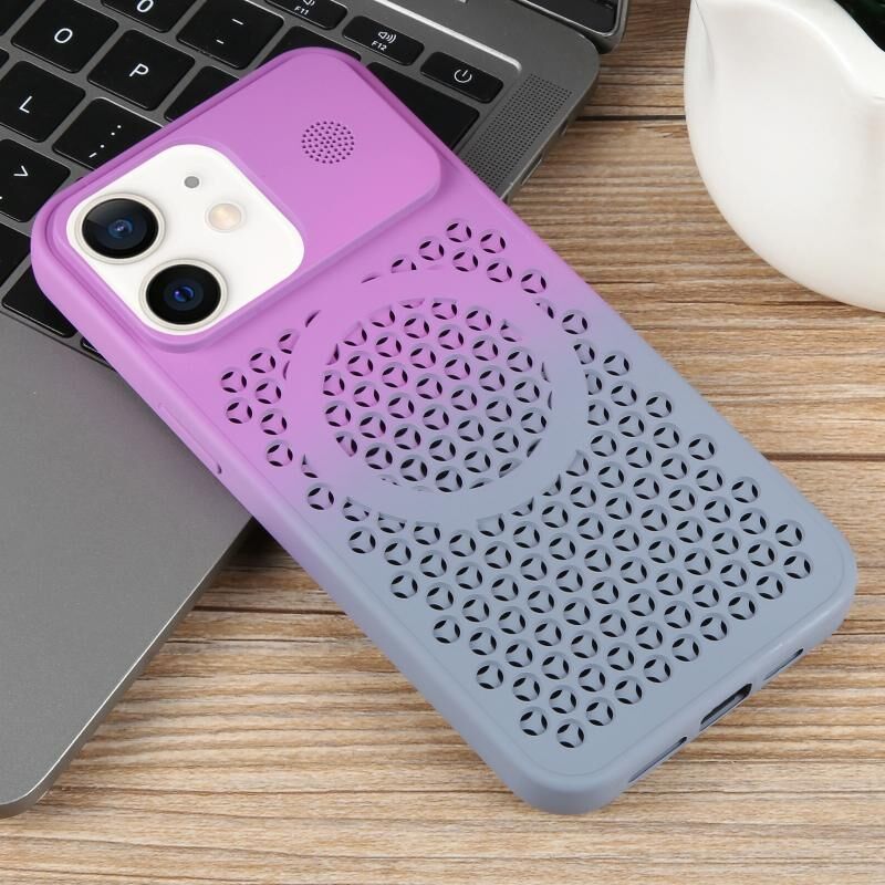 Θήκη τηλεφώνου για iPhone 12 με διαβαθμιστικά χρώματα, κυψελωτό σχέδιο, αρωματοθεραπεία και MagSafe (Ροζ + Κόκκινο του Ρόδου)