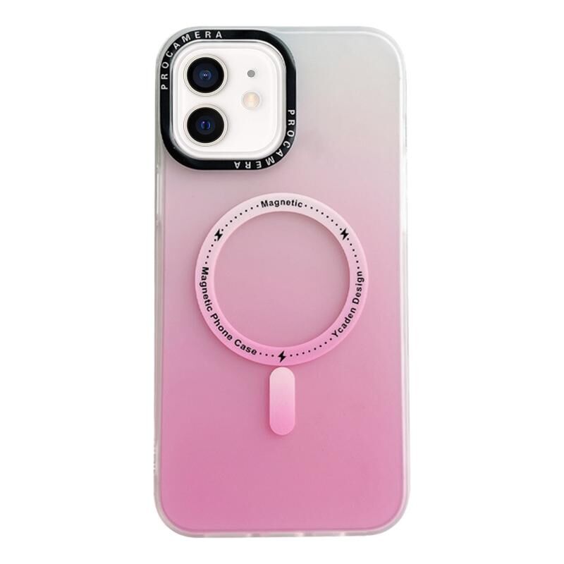 For iPhone 12 Gradient IMD PC Hybrid TPU MagSafe Phone Case(Pink)