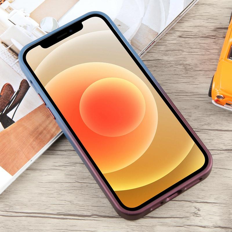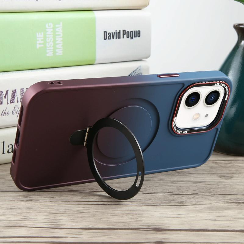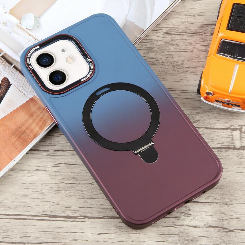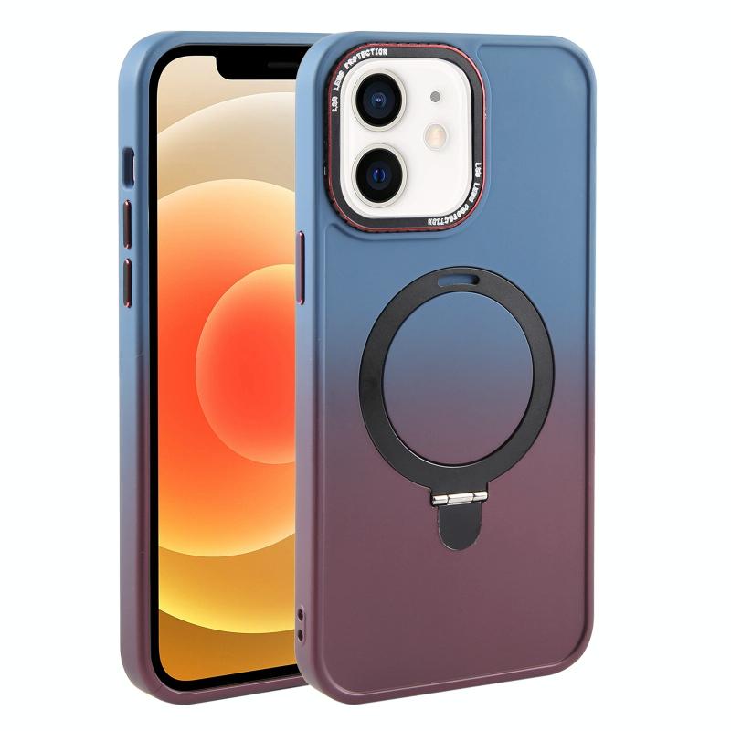 For iPhone 12 Gradient MagSafe Holder Liquid TPU Hybrid PC Phone Case(Blue Wine Red)