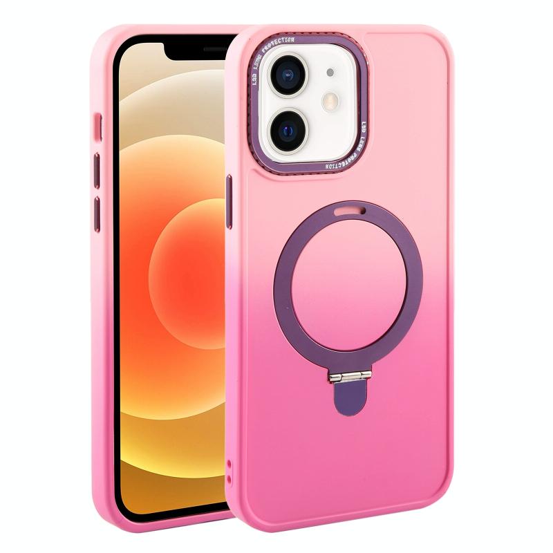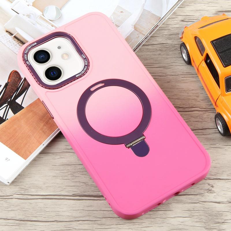 For iPhone 12 Gradient MagSafe Holder Liquid TPU Hybrid PC Phone Case(Pink Red)