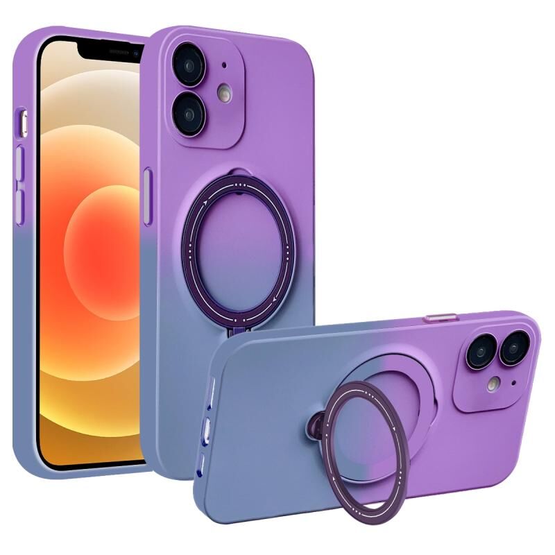 For iPhone 12 Gradient TPU MagSafe Holder Phone Case(Deep Purple Gray)