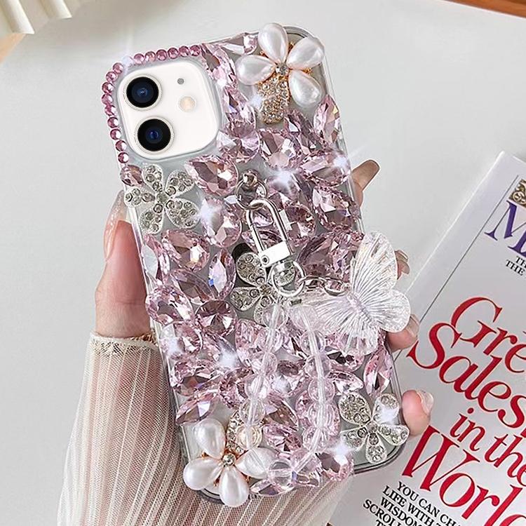 For iPhone 12 Handmade Butterfly Diamond Inlay PC Phone Case(Pink)