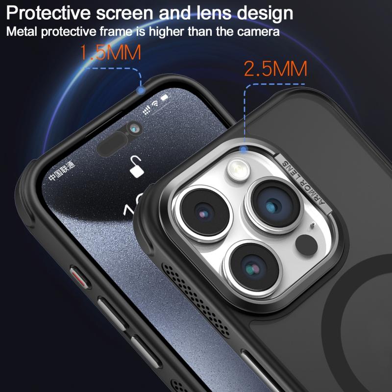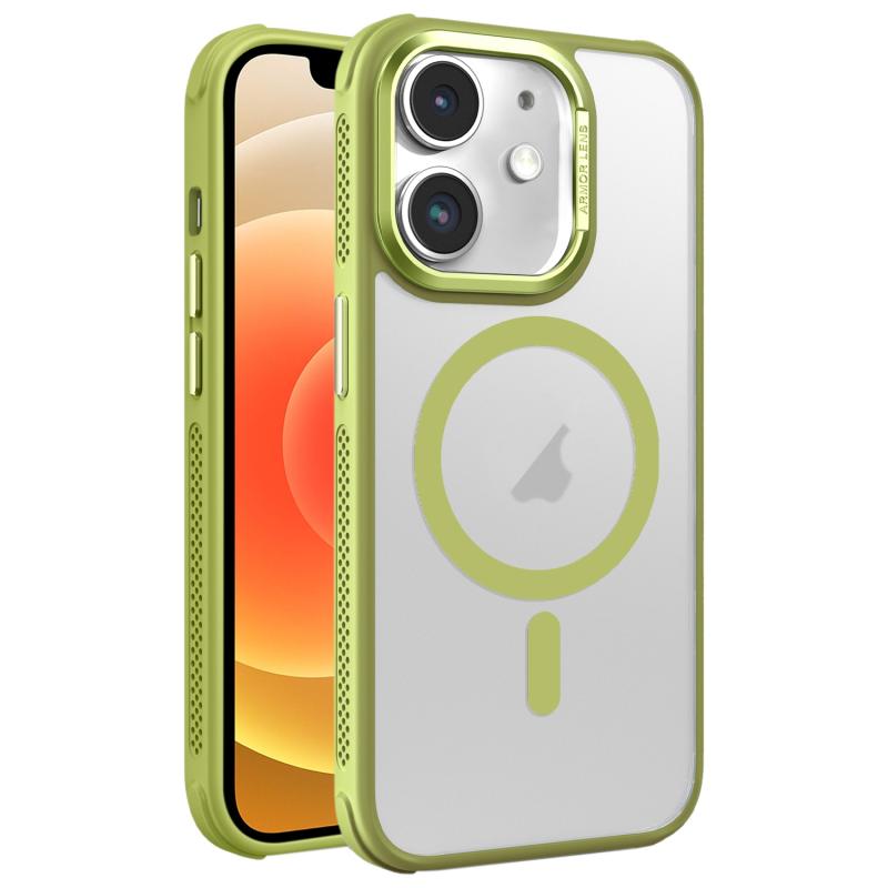 For iPhone 12 Hardware Side Cooling Skin Feel Frosted Metal Lens Frame MagSafe Phone Case(Green)