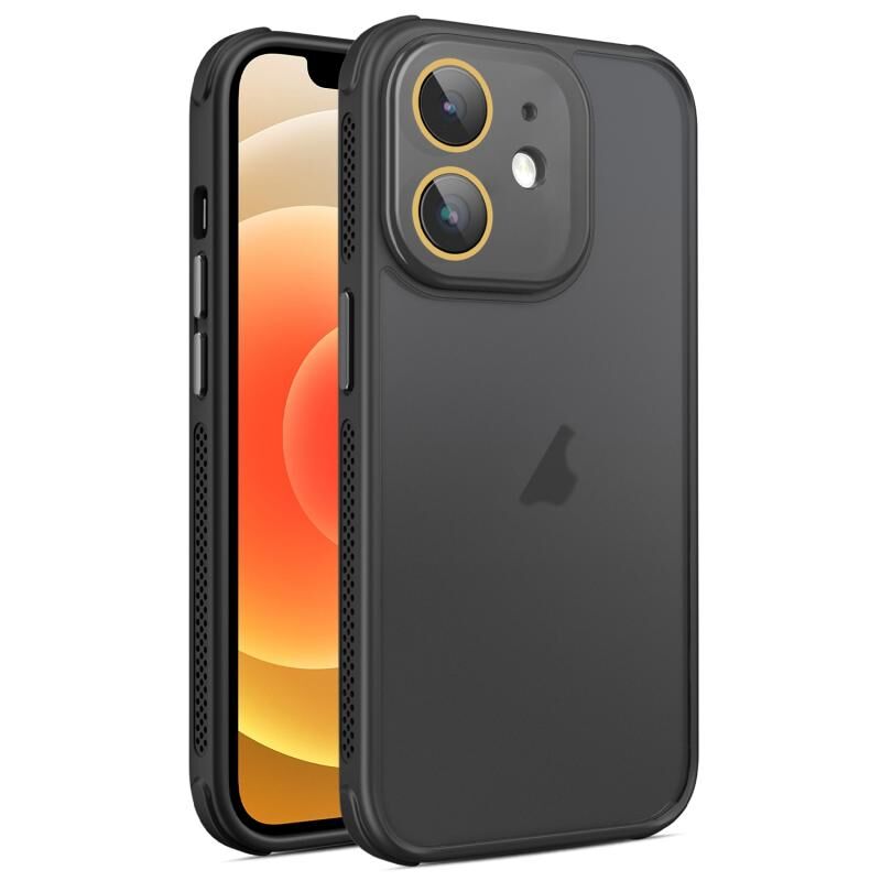 For iPhone 12 Hardware Side Cooling Skin Feel Frosted Phone Case with Lens Film(Black)