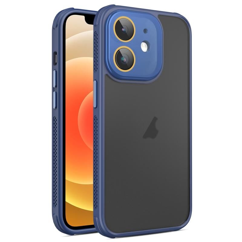 For iPhone 12 Hardware Side Cooling Skin Feel Frosted Phone Case with Lens Film(Blue)