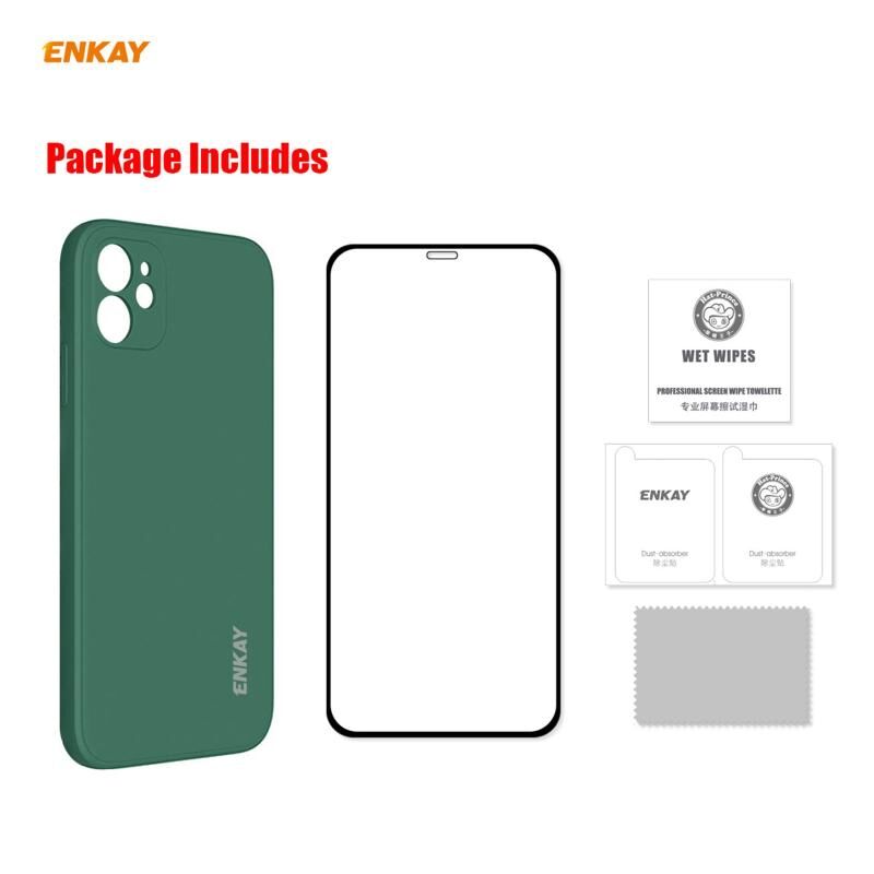 Θήκη για iPhone 12 Hat-Prince ENKAY ENK-PC0682 Υγρή Σιλικόνη με Ευθείες Γωνίες, Αντικραδασμική + Αντιθαμβωτική μεμβράνη tempered glass 9H 2.5D με πλήρη κόλλα 0.26mm (Σκούρο Πράσινο) (ENKAY)