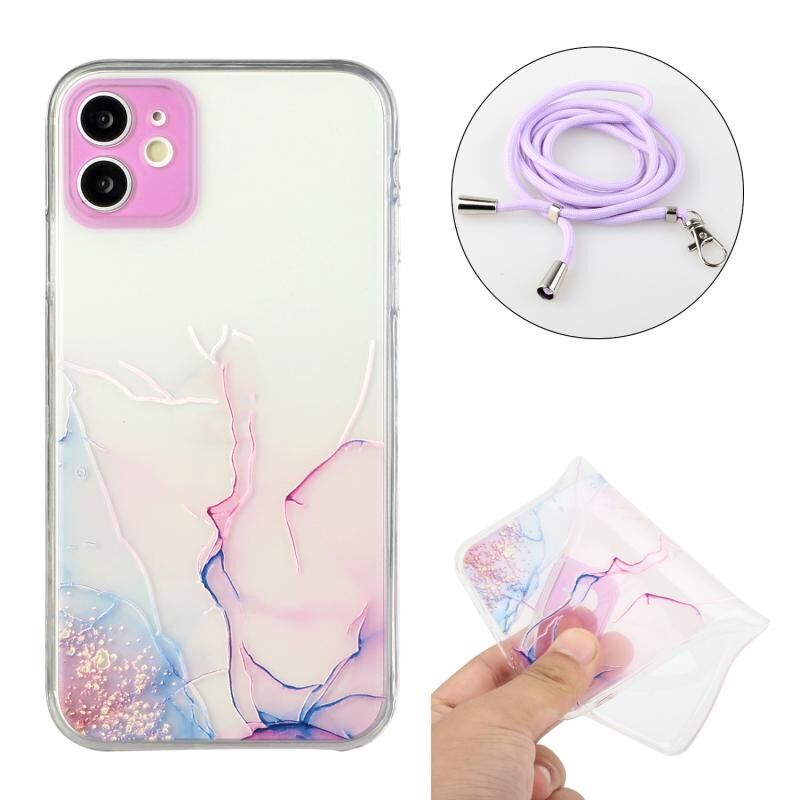 Θήκη για iPhone 12, κοίταγμα μαρμάρου, TPU αντικραδασμική προστατευτική με κορδόνι λαιμού (Γκρι)