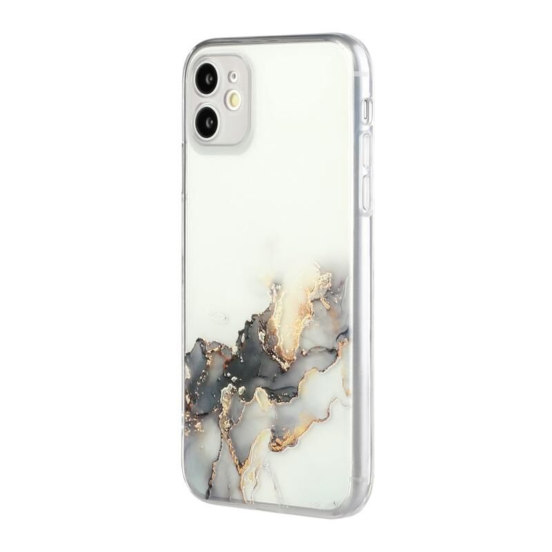 Θήκη προστασίας για iPhone 12, από TPU με σχέδιο κοίλου μαρμάρου, ευθείες άκρες και λεπτές οπές (Κίτρινο-Μπλε)