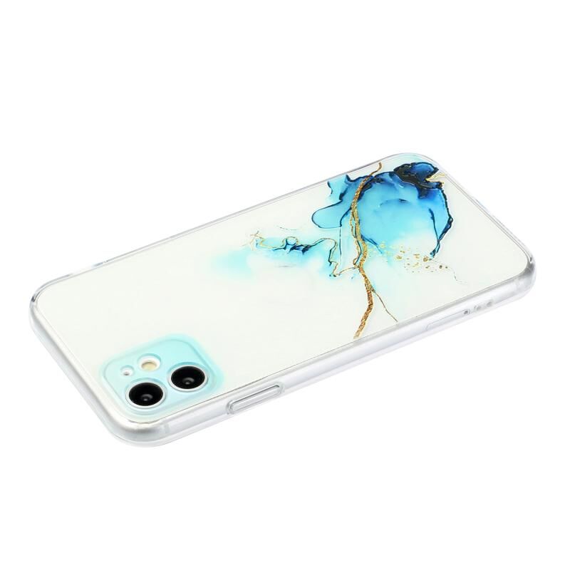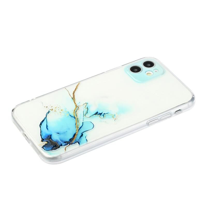 Θήκη προστασίας για iPhone 12, από TPU με σχέδιο κοίλου μαρμάρου, ευθείες άκρες και λεπτές οπές (Κίτρινο-Μπλε)