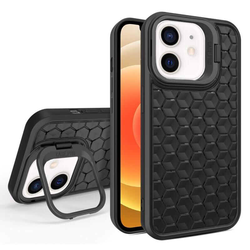 For iPhone 12 Honeycomb Radiating Lens Holder Magsafe Phone Case(Black)