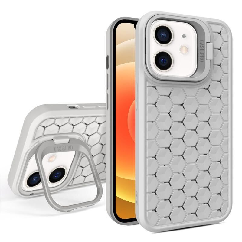 For iPhone 12 Honeycomb Radiating Lens Holder Magsafe Phone Case(Grey)