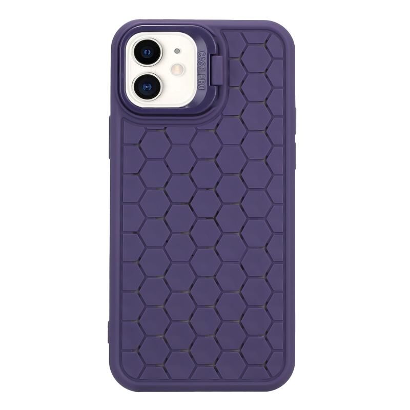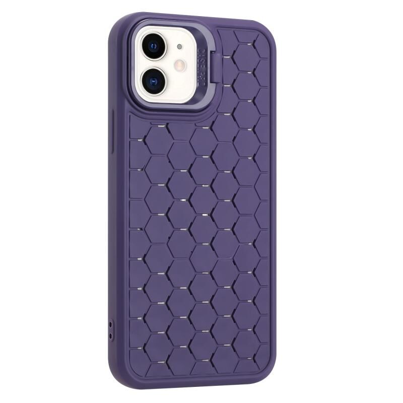 For iPhone 12 Honeycomb Radiating Lens Holder TPU Phone Case(Purple)