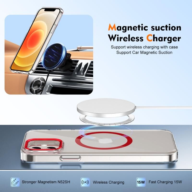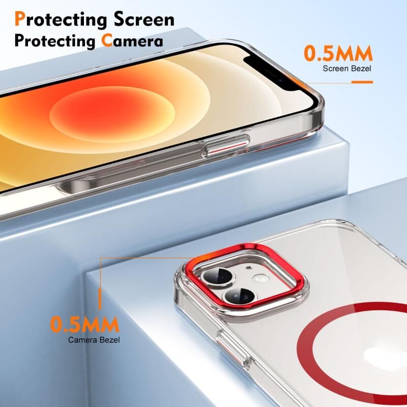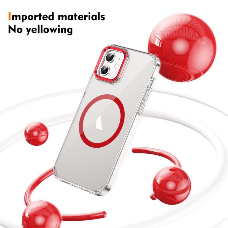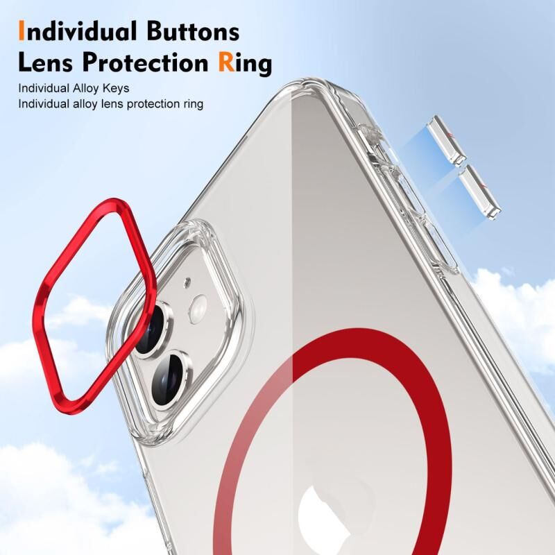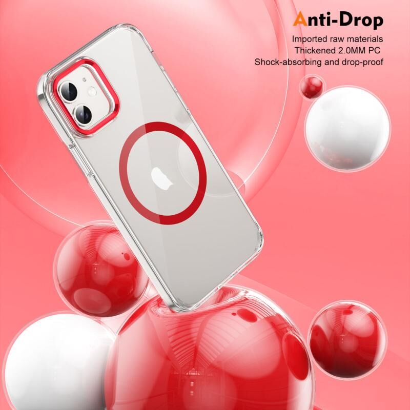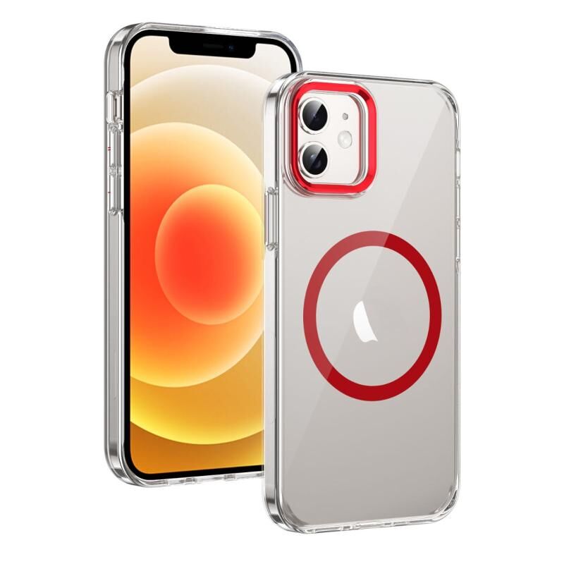 For iPhone 12 Ice Feel HD Transparent MagSafe PC Full Coverage Phone Case(Red)