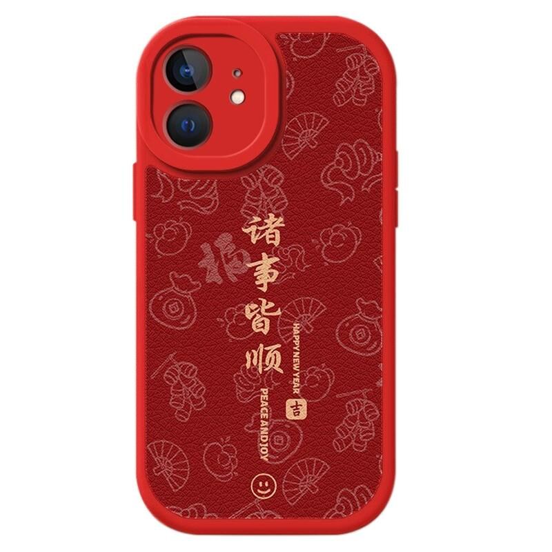 Θήκη κινητού τηλεφώνου πλήρους κάλυψης για iPhone 12 με υφή δέρματος αρνιού, σχέδιο για την Πρωτοχρονιά (Ικανοποιεί την επιθυμία σας)