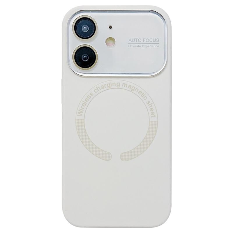 For iPhone 12 Large Window Acrylic Glass Lens MagSafe Silicone Phone Case(Antique White)
