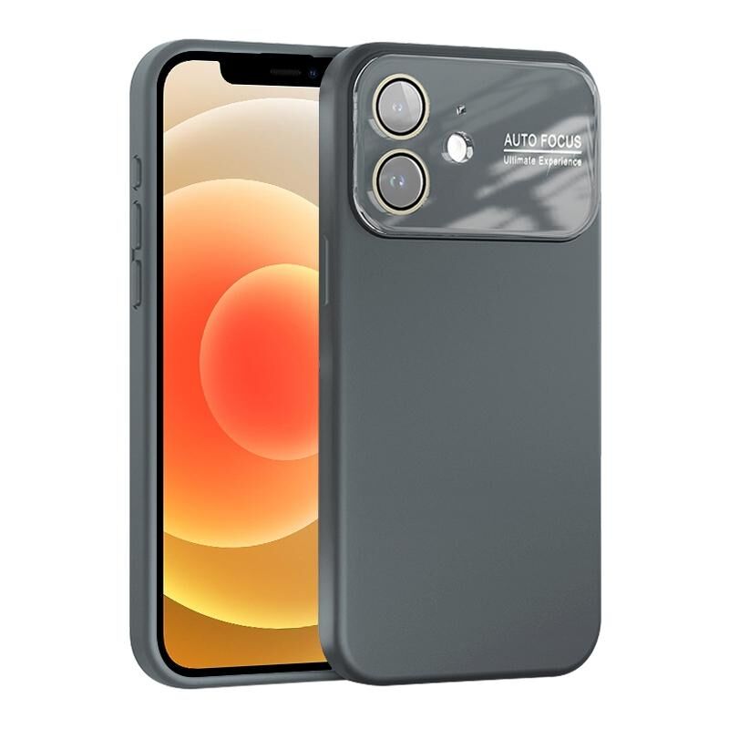 For iPhone 12 Large Window Acrylic Lens Film + Liquid Silicone Full Coverage Phone Case(Gray)