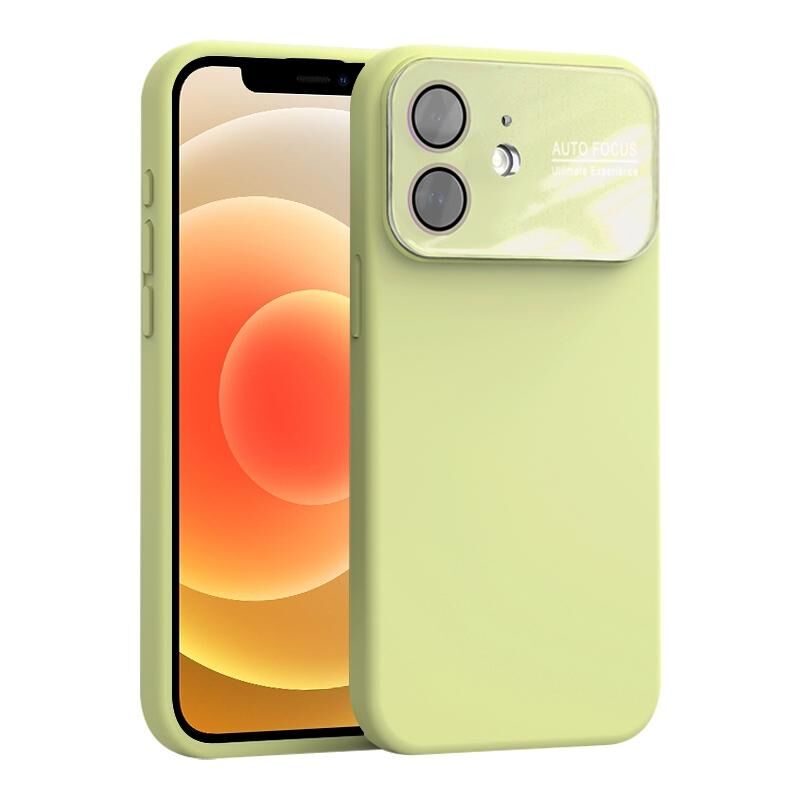 For iPhone 12 Large Window Acrylic Lens Film + Liquid Silicone Full Coverage Phone Case(Milk Yellow)