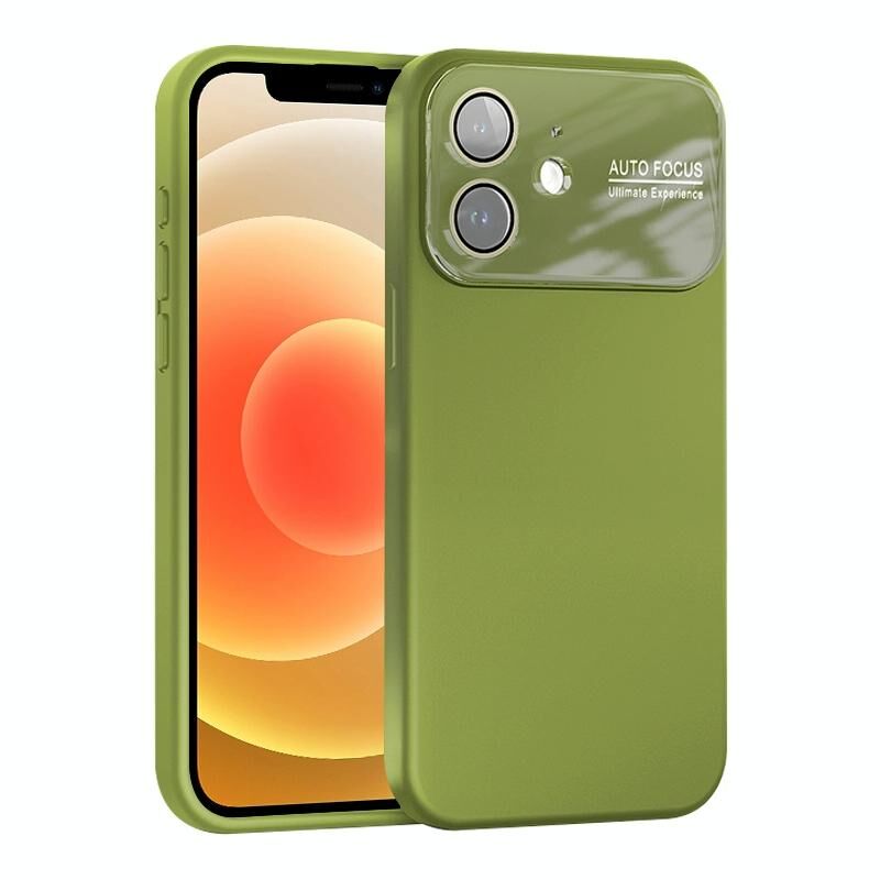 For iPhone 12 Large Window Acrylic Lens Film + Liquid Silicone Full Coverage Phone Case(Willow Green)