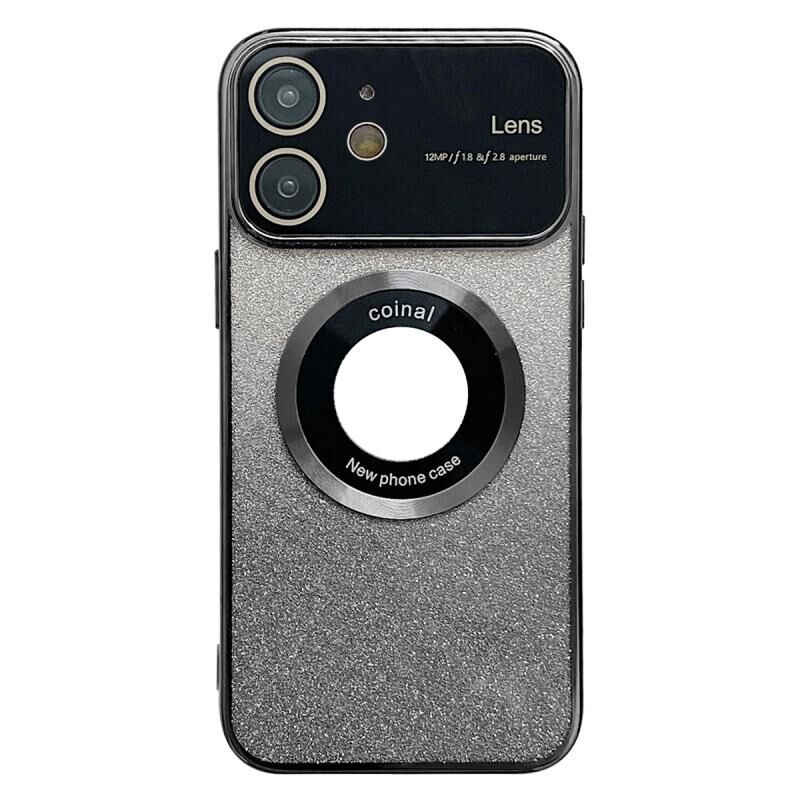 For iPhone 12 Large Window MagSafe Gradient Glitter Electroplating TPU Phone Case(Black)