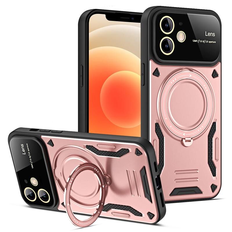 For iPhone 12 Large Window MagSafe Holder Phone Case(Rose Gold)