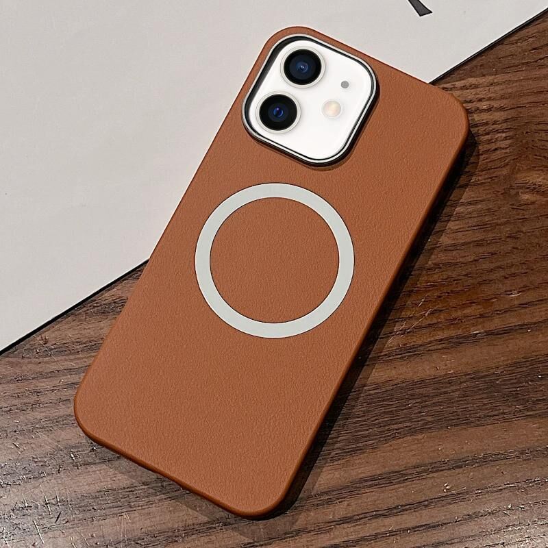 Θήκη τηλεφώνου πλήρους κάλυψης με υφή δέρματος και σχεδιασμό MagSafe για iPhone 12 (Μαύρο)