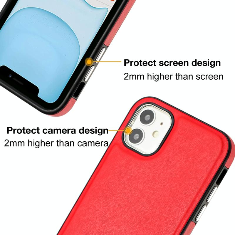 Θήκη τηλεφώνου πλήρους κάλυψης με υφή δέρματος για iPhone 12 (Κόκκινο)