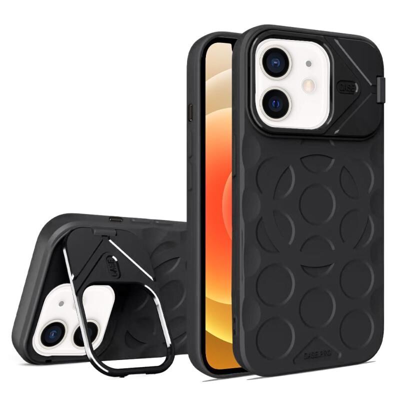 For iPhone 12 Lens Frame Holder MagSafe PC Hybrid TPU Phone Case(Black)