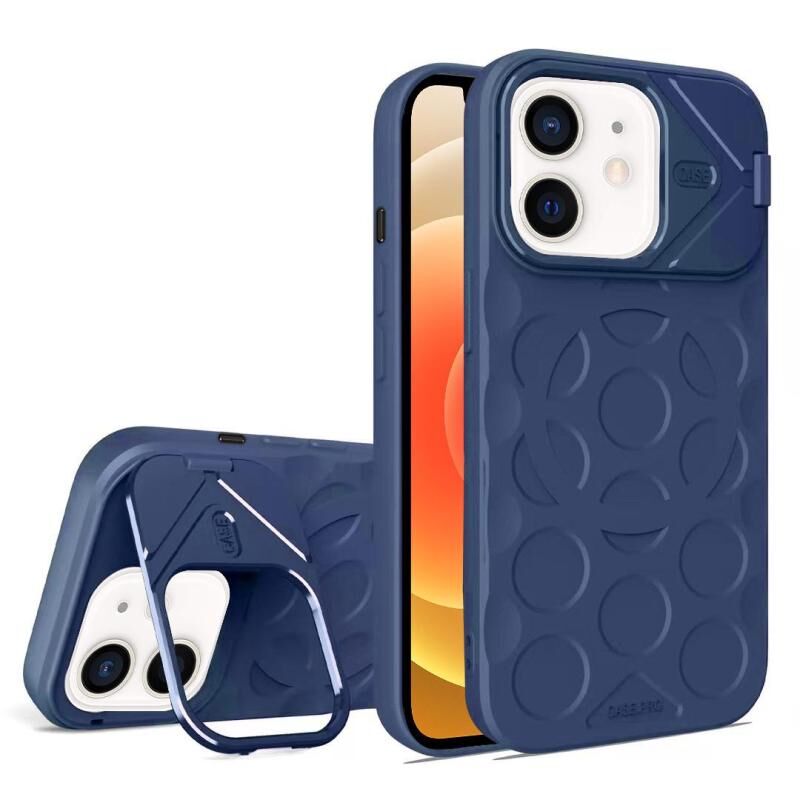 For iPhone 12 Lens Frame Holder MagSafe PC Hybrid TPU Phone Case(Royal Blue)