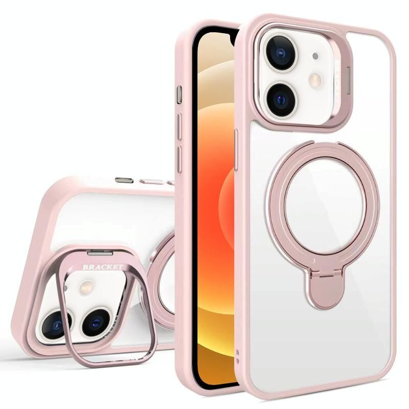 For iPhone 12 Lens Protection & Ring Bracket MagSafe Phone Case(Light Pink)