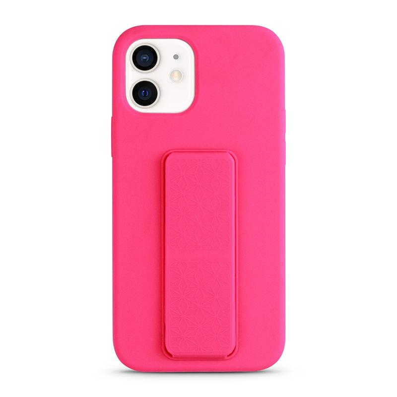 For iPhone 12 Liquid Silicone Holder Phone Case(Brilliant Pink)