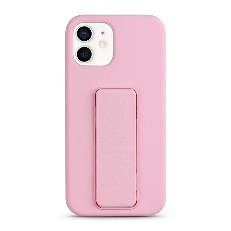 For iPhone 12 Liquid Silicone Holder Phone Case(Pink)