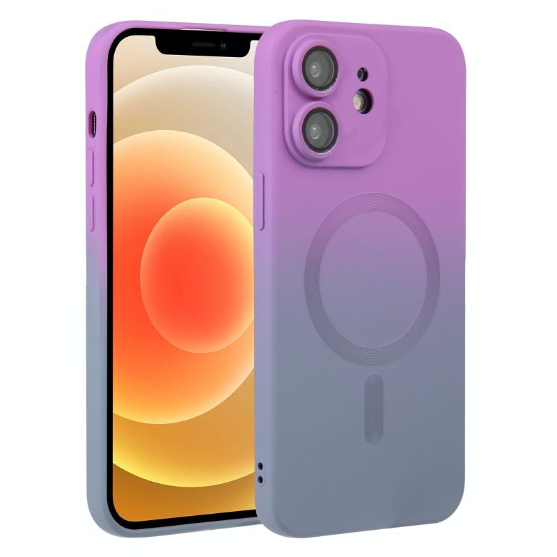 Θήκη τηλεφώνου για iPhone 12, υγρή σιλικόνη TPU με διαβάθμιση χρώματος, συμβατή με MagSafe (Μωβ)
