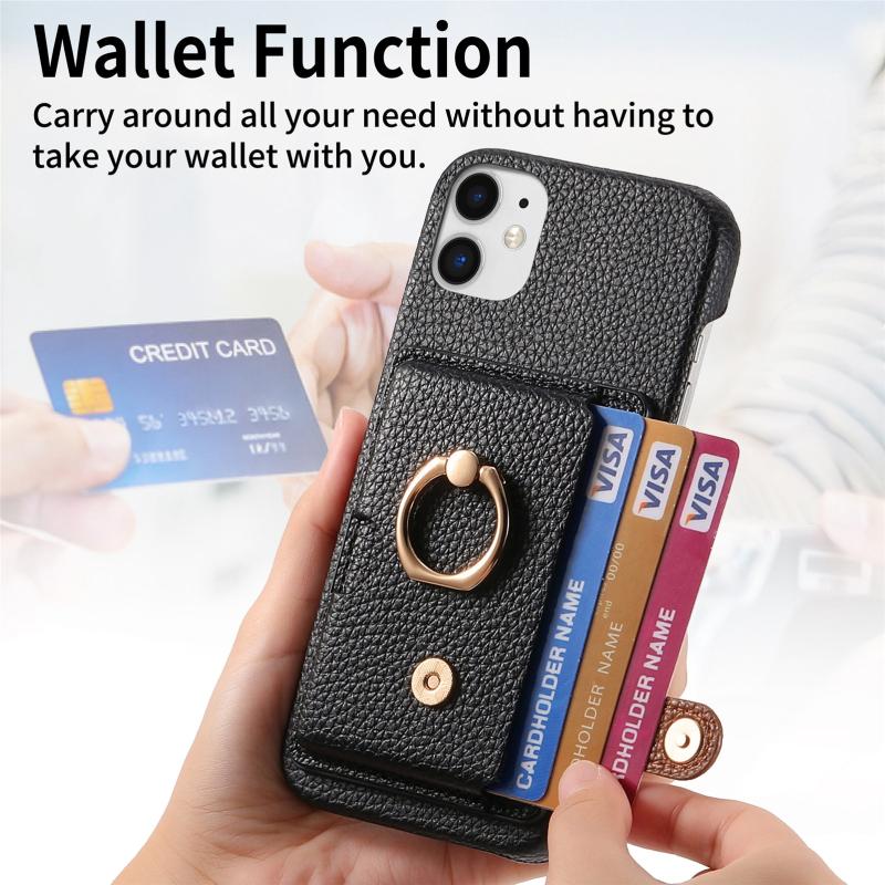 For iPhone 12 Litchi Leather Oil Edge Ring Card Back Phone Case(Black)