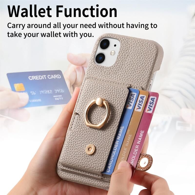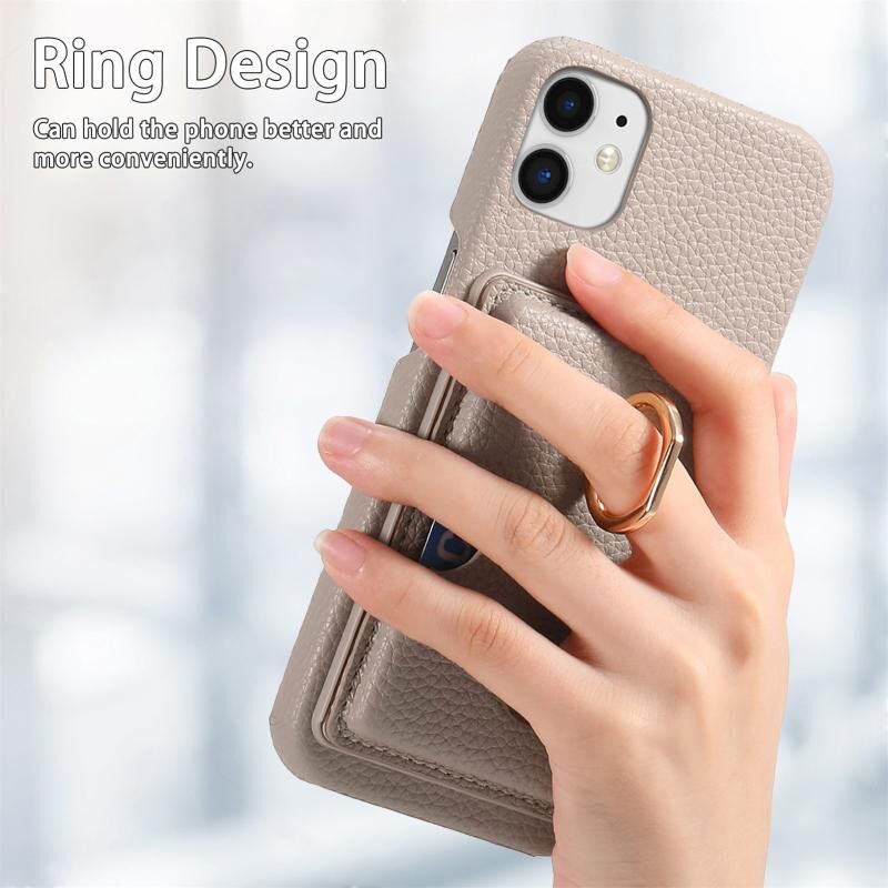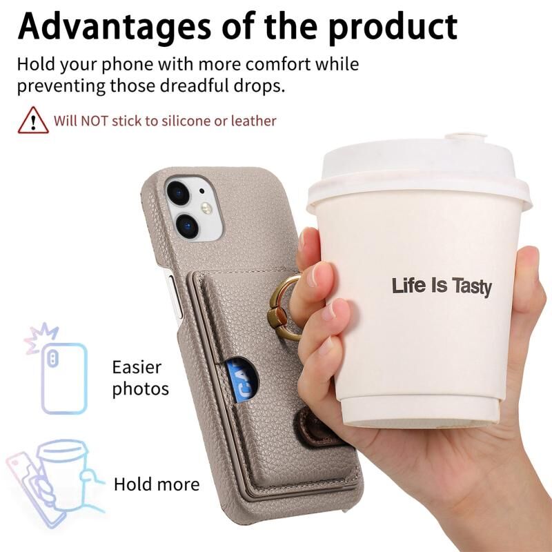 Θήκη τηλεφώνου για iPhone 12 από δέρμα Litchi με λεπτή άκρη και θήκη καρτών στην πλάτη (Πράσινο Τσάι)
