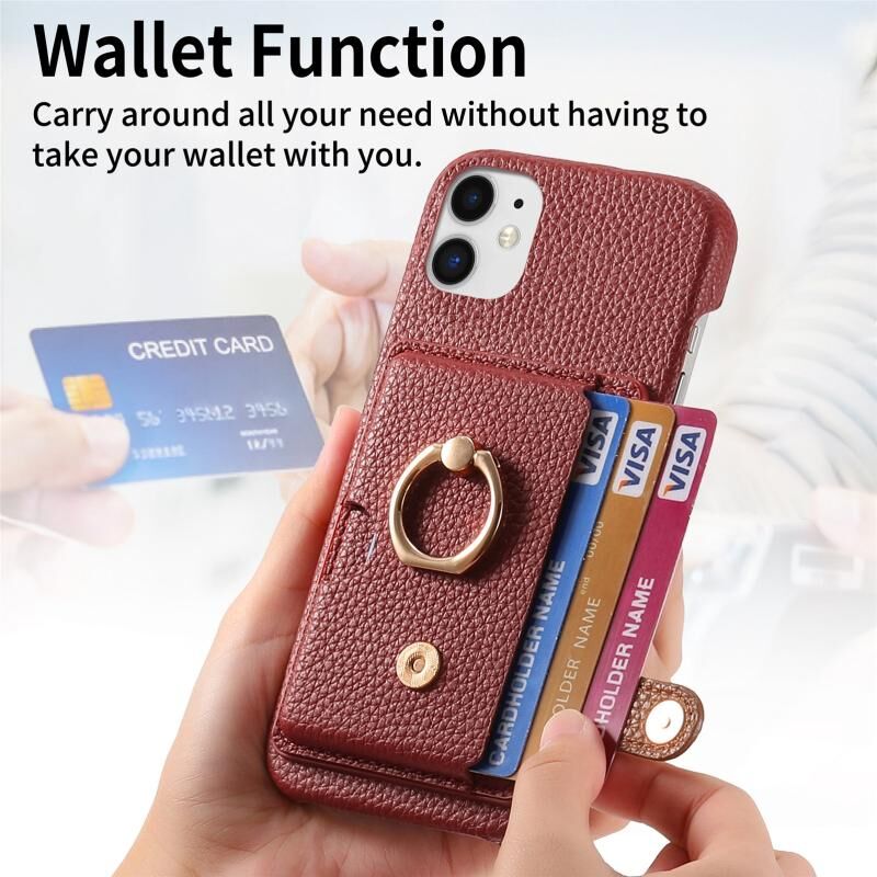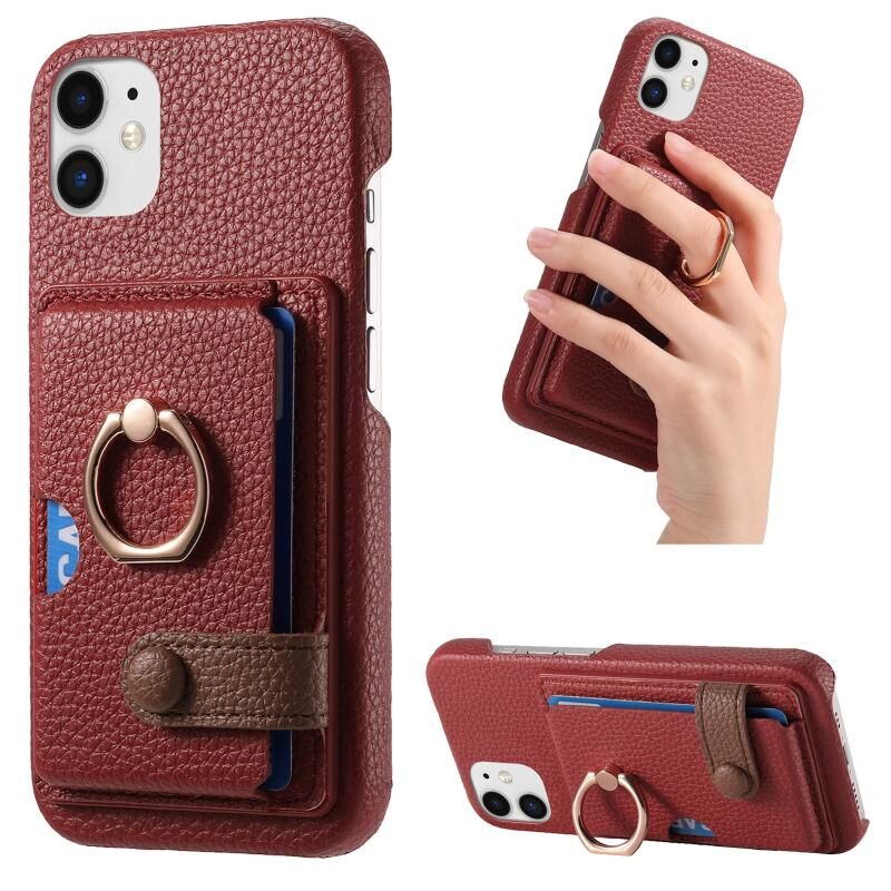 Θήκη τηλεφώνου για iPhone 12 από δέρμα Litchi με λεπτή άκρη και θήκη καρτών στην πλάτη (Πράσινο Τσάι)