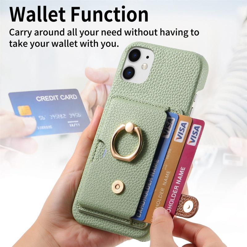 Θήκη τηλεφώνου για iPhone 12 από δέρμα Litchi με λεπτή άκρη και θήκη καρτών στην πλάτη (Πράσινο Τσάι)