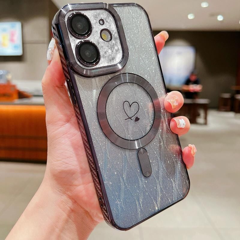 Θήκη τηλεφώνου TPU με μαγνητική σύνδεση Magsafe, από ανθρακονήματα με σχέδιο διαβαθμισμένης λάμψης και φύλλα για iPhone 12 (Ροζ)