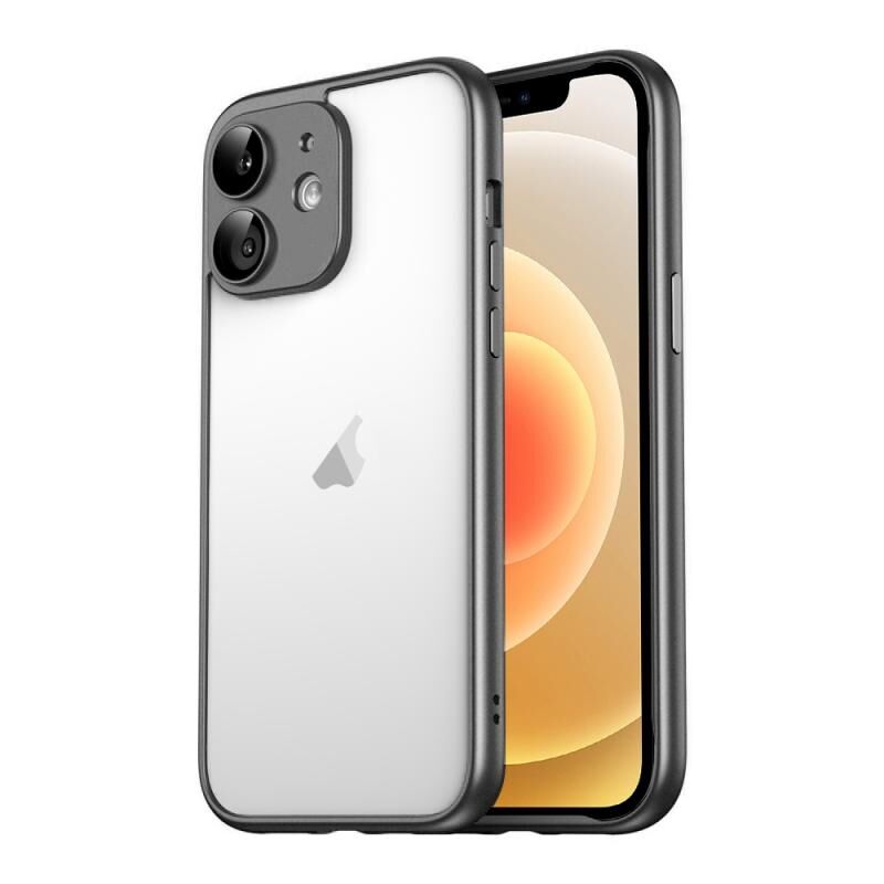 Για iPhone 12 Μακαρόν θήκη κινητού PC με καθαρό πλαίσιο και προστατευτική μεμβράνη φακού (Μαύρο)
