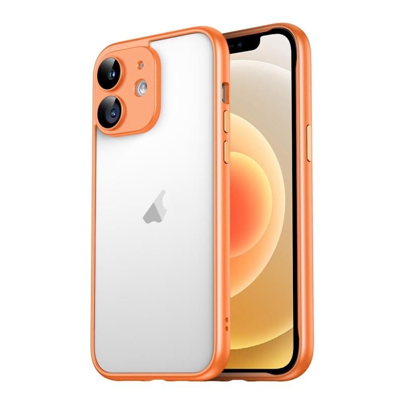 Για iPhone 12 Μακαρόν θήκη κινητού PC με καθαρό πλαίσιο και προστατευτική μεμβράνη φακού (Μαύρο)