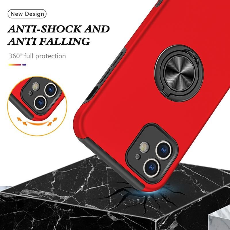 Θήκη τηλεφώνου με μαγνητικό δακτύλιο και στήριξη για iPhone 12, ανθεκτική στις κρούσεις (Μαύρο)