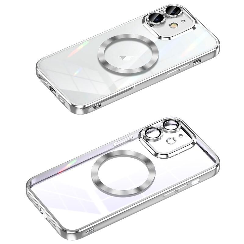 For iPhone 12 MagSafe CD Texture Metal Lens Frame Full Coverage Phone Case(Silver)