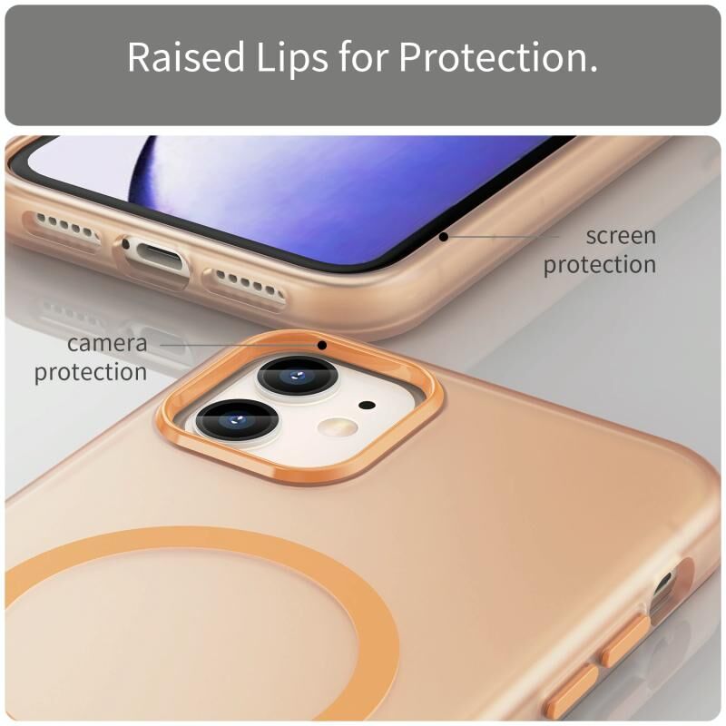 For iPhone 12 MagSafe Frosted Translucent TPU + PC Full Coverage Phone Case(Orange)