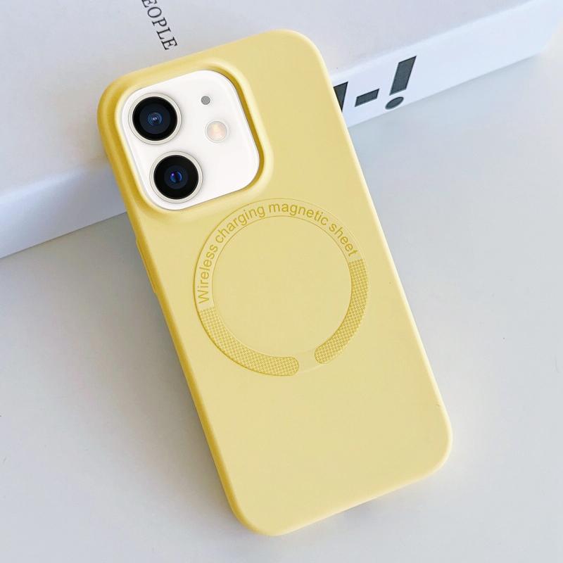 For iPhone 12 MagSafe Magnetic Liquid Silicone Phone Case(Yellow)