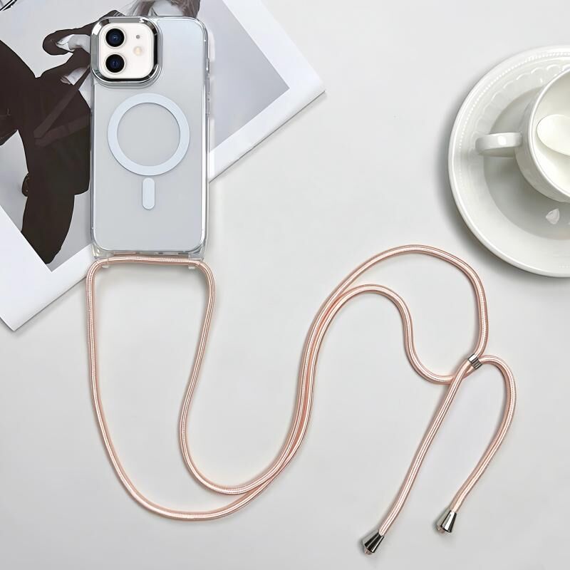 For iPhone 12 MagSafe Magnetic PC + TPU Phone Case with Lanyard(Pink Gold)