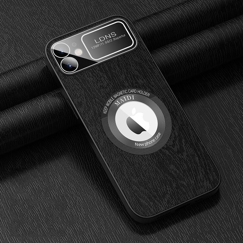 For iPhone 12 MagSafe Magnetic Tree Texture PU Phone Case(Black)