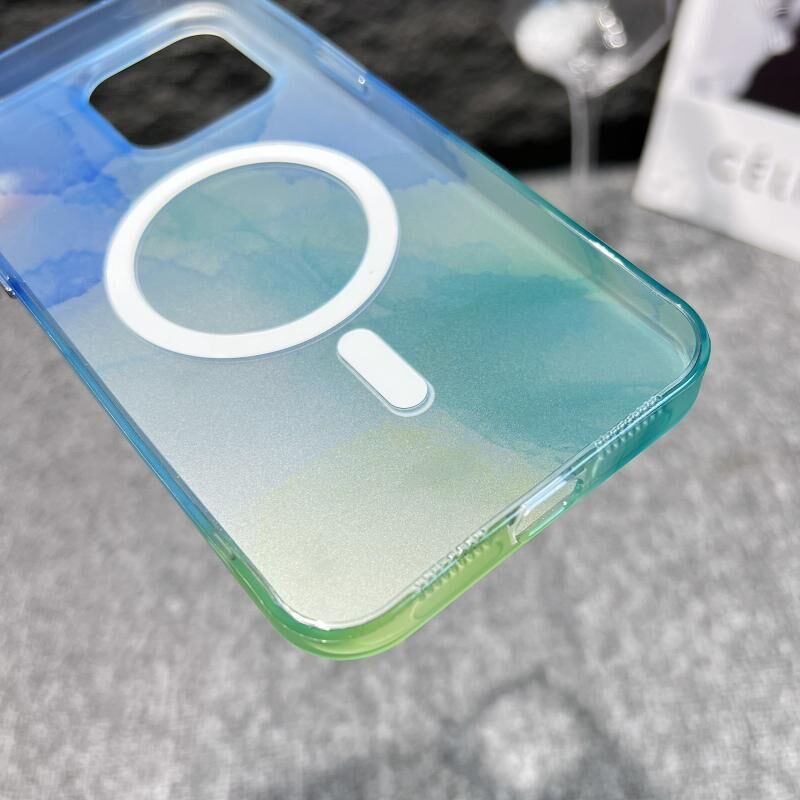 For iPhone 12 MagSafe Magnetic Watercolor TPU Phone Case(Orange White)