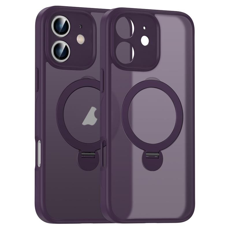 For iPhone 12 Matte Texture 360 Degree Rotary Tone Holder MagSafe Phone Case(Dark Purple)