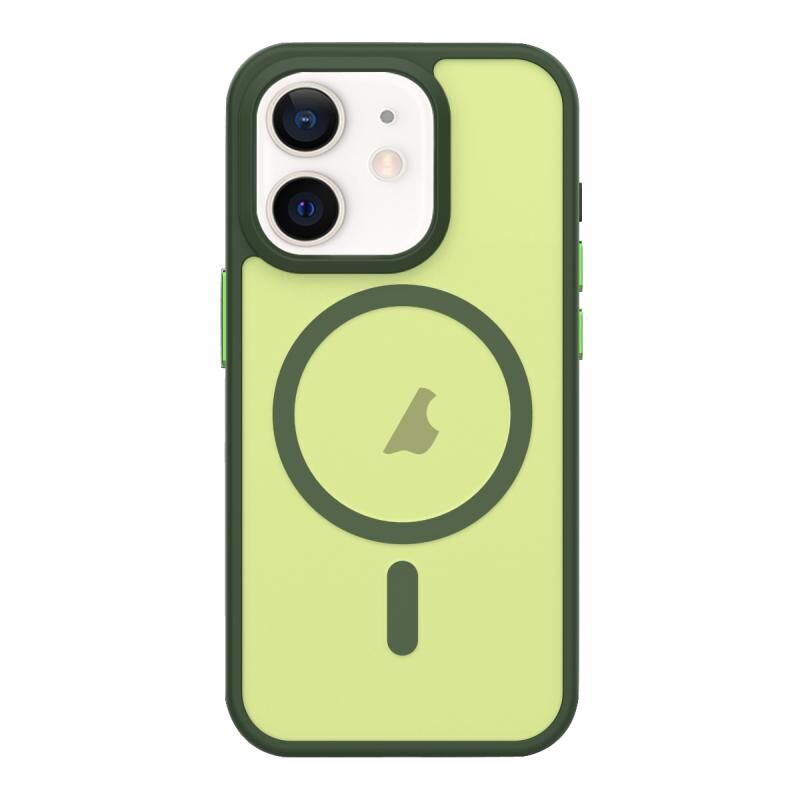For iPhone 12 Metal Button Skin Feel Matte MagSafe Shockproof Phone Case(Green)